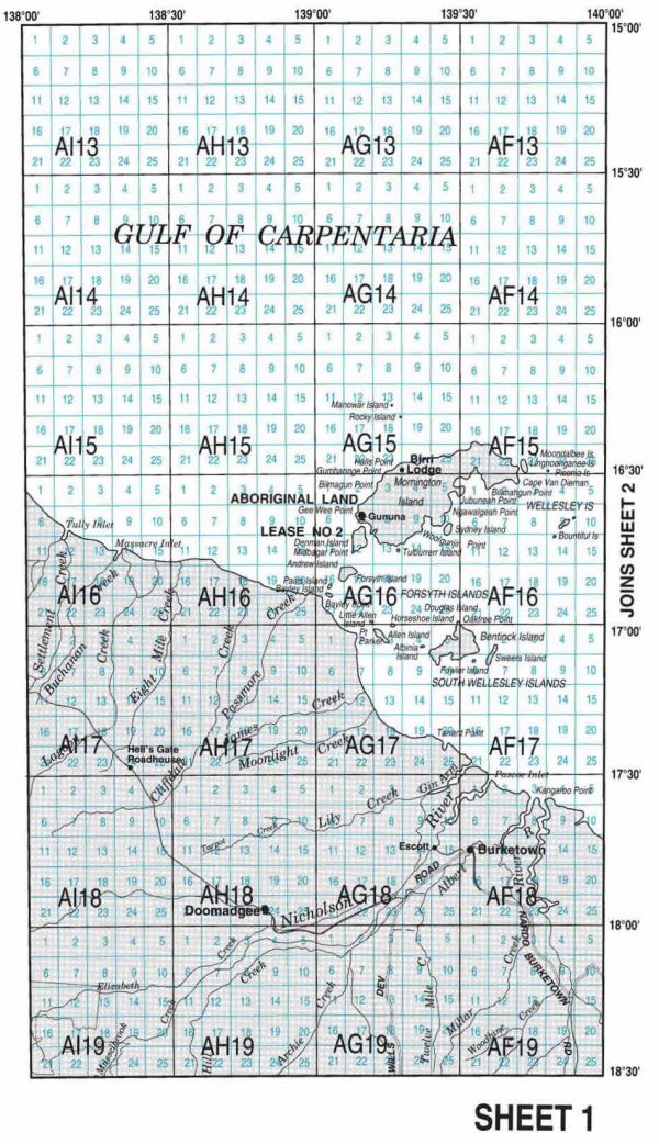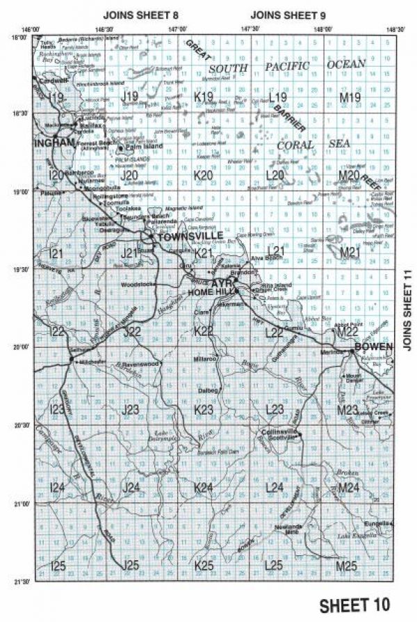 Queensland waterways are divided into 16 mapped areas. Each area has a location reference consisting of a grid and site (e.g. grid U38, site 13).